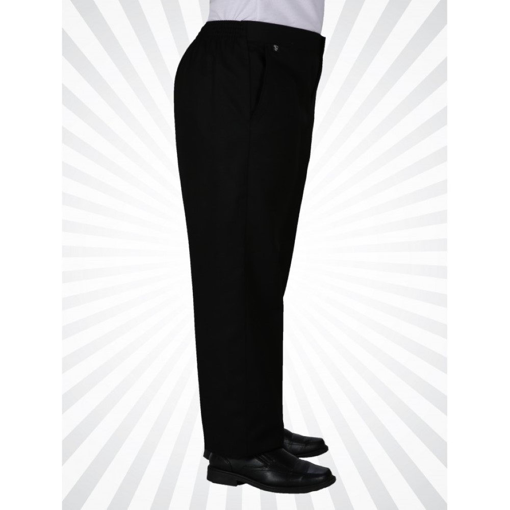 • Half elastic waist trousers with hook and bar fastening