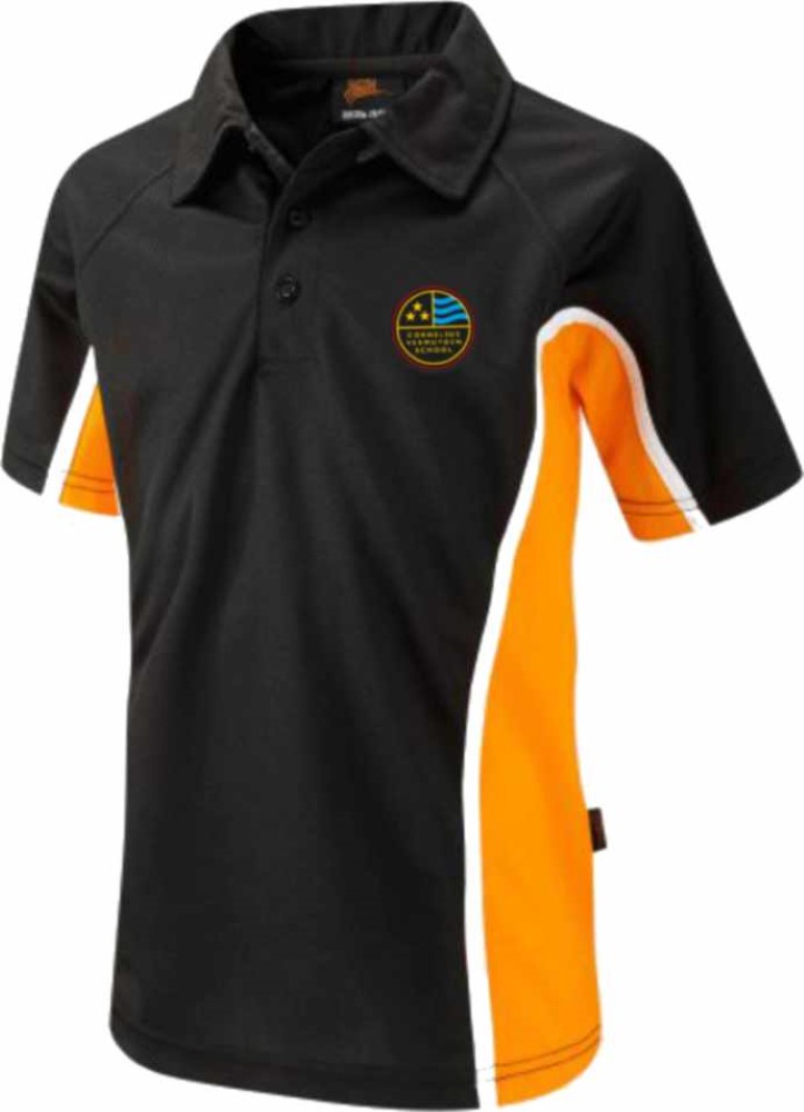 Panelled Boys Polo Top – Black/Amber